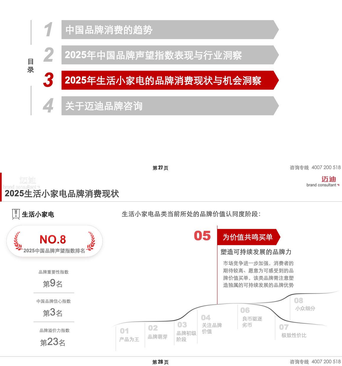 《2025中国家庭品牌消费趋势报告(生活小家电篇)》由迈迪品牌研究院出品,基于覆盖177个地级市、4000人的抽样调研,聚焦中国家庭品牌消费趋势及生活小家电品类的市场现状与机会。